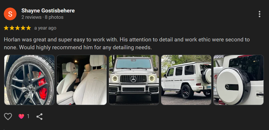 Horlan was great and super easy to work with. His attention to detail and work ethic were second to none. Would highly recommend him for any detailing needs.