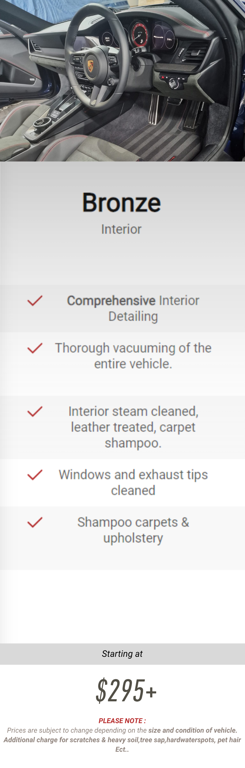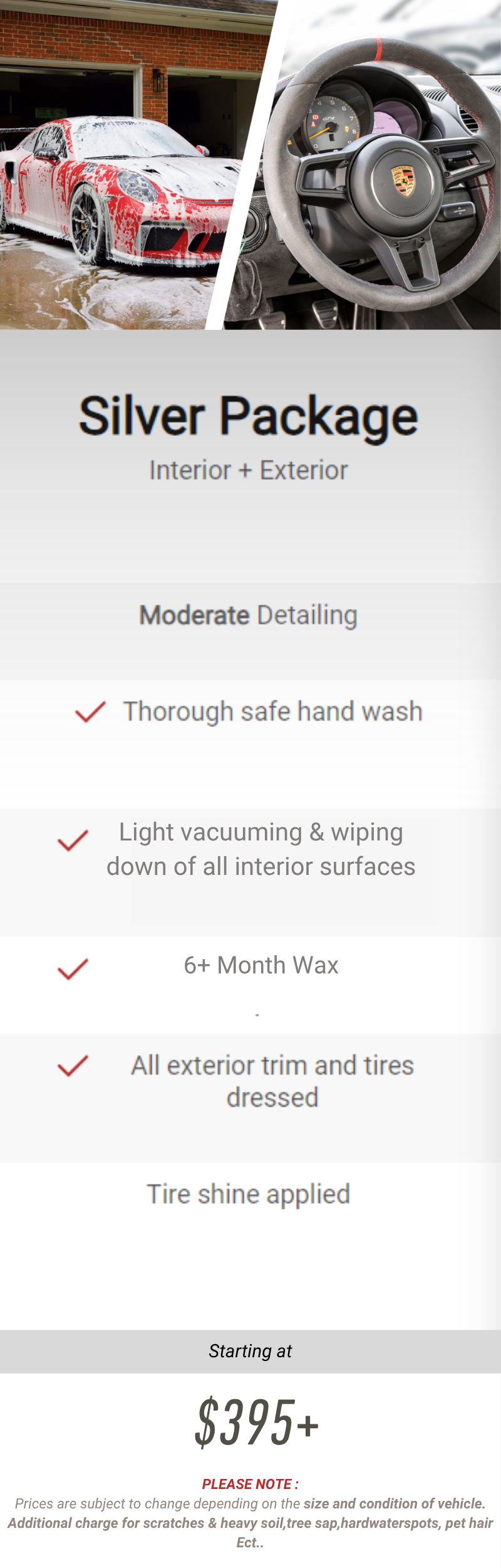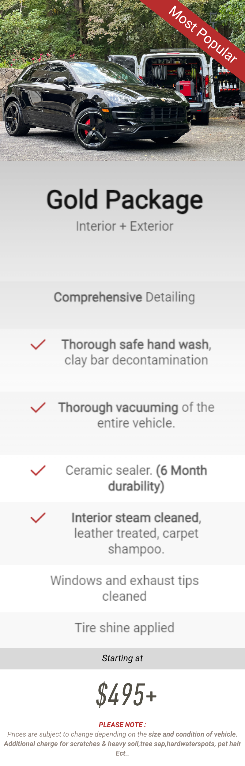 Prices are subject to change depending on size and condition of vehicle.